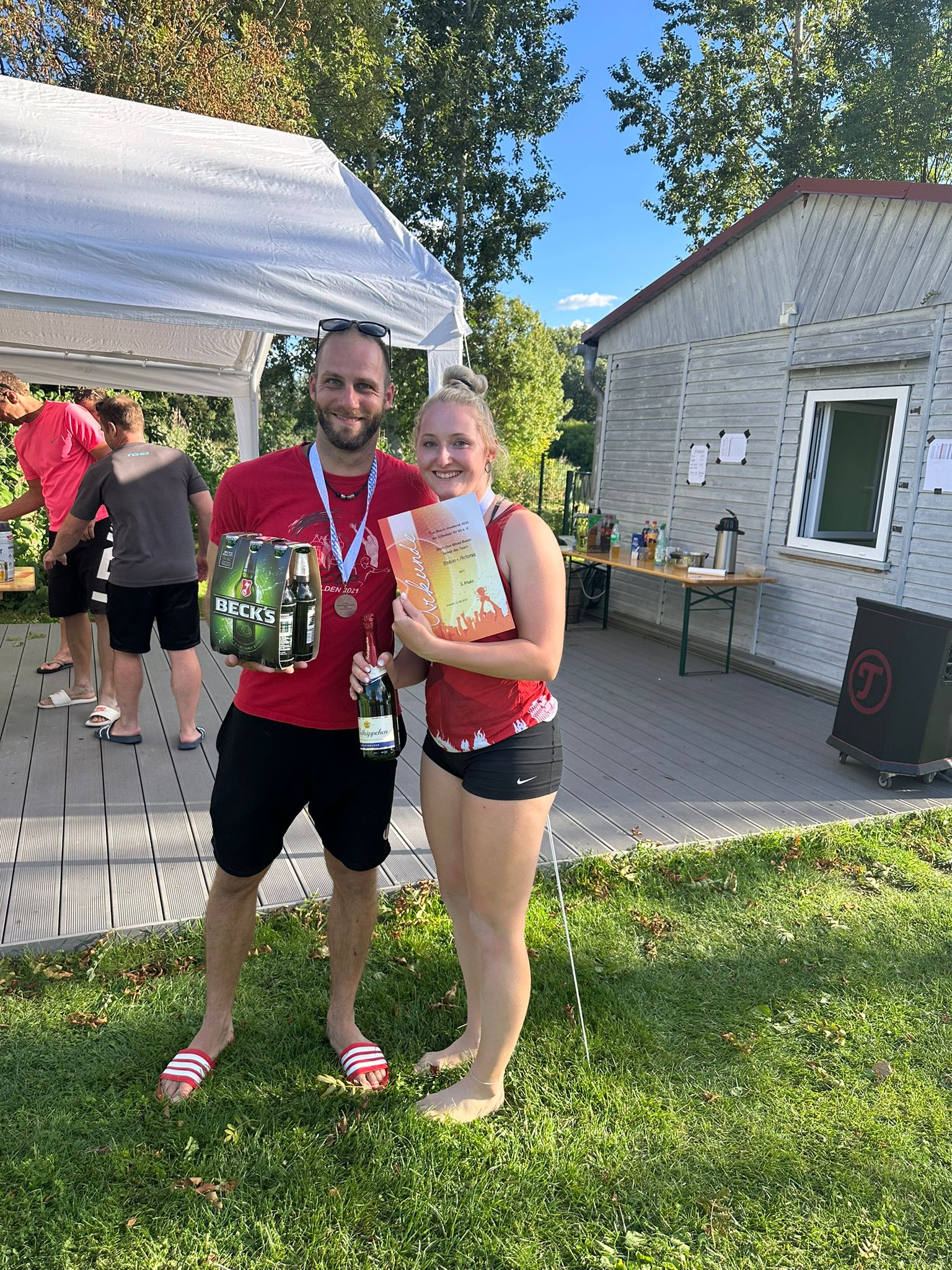 Am Sonntag ging es mit 13 Teams im Duo Mixed Beach weiter. Auch hier waren spannende Ballwechsel und knappe Entscheidungen an der Tagesordnung. Im kleinen Finale setzten sich Robin und Antonia gegen Christian und Nancy durch. Im Finale war es dann ein Kopf-an-Kopf-Rennen, das Hugo und Martha schließlich gegen Matthias und Julia für sich entschieden.