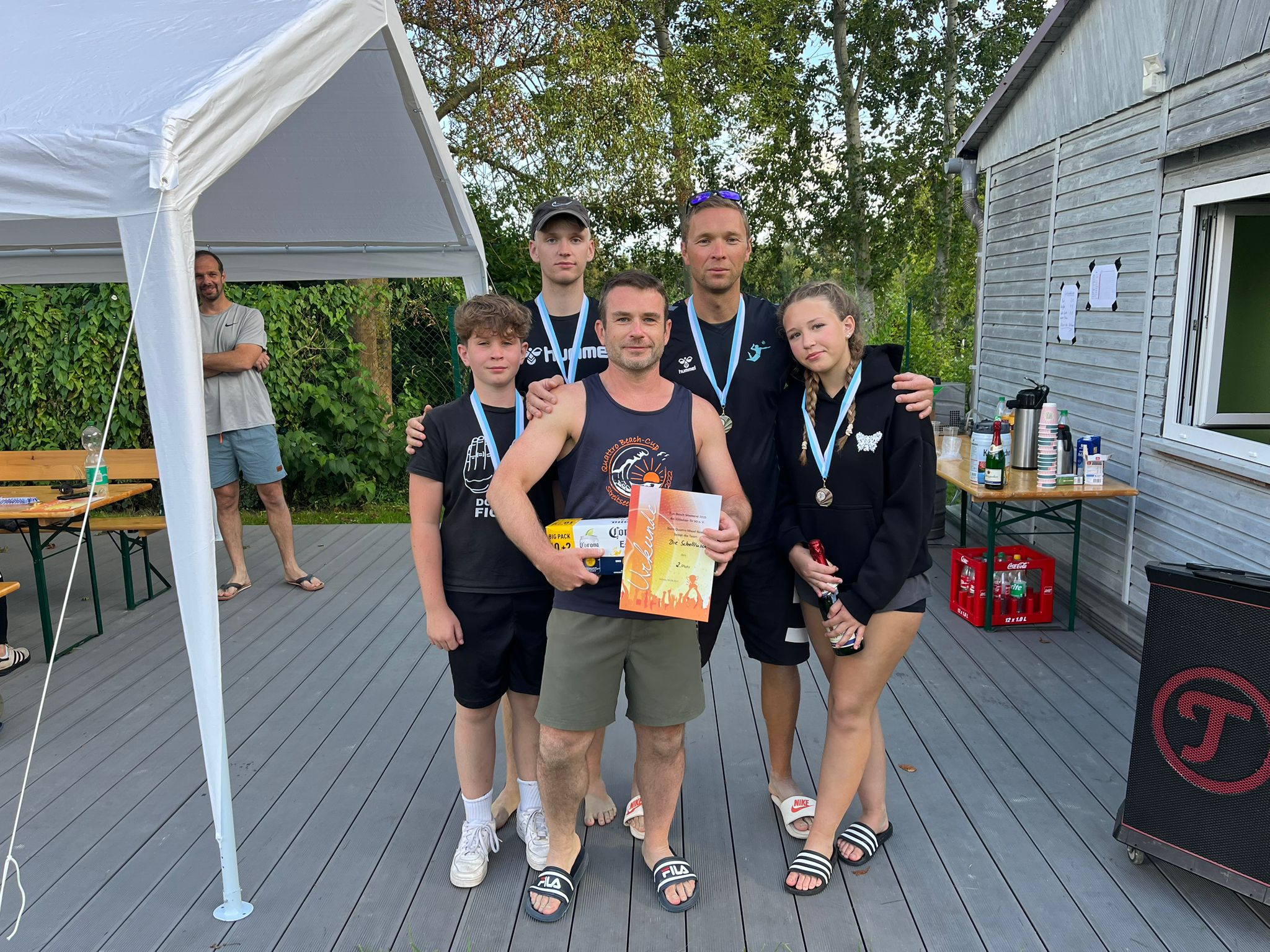 Am Samstag starteten 13 Teams beim Quattro Mixed Beach. Schon in der Vorrunde ging es heiß her, und spätestens in den Finalspielen hielt es niemanden mehr auf den Plätzen. Im kleinen Finale sicherten sich die Ballermöwen nach einem spannenden Schlagabtausch den dritten Platz gegen Meine Familie und Dean. Im großen Finale kam es dann zum echten Highlight: Die Lokalmatadoren Schellluschen lieferten sich ein packendes Duell mit den Schwimmfüchsen – am Ende hatten die Füchse knapp die Nase vorn und jubelten über den Turniersieg.