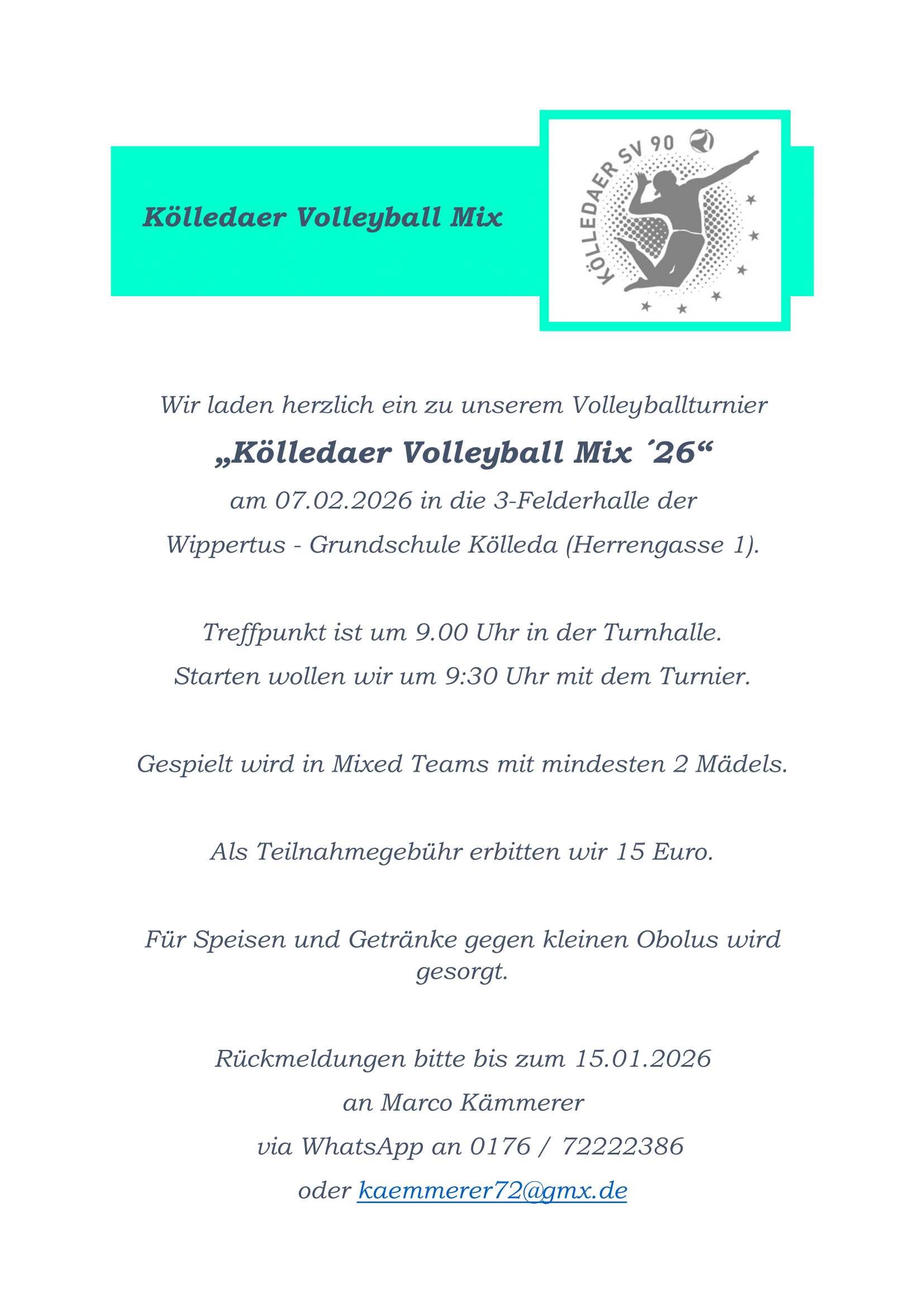 Am 07.02.2026 Turnier findet das KSV 90 Mixed-Turnier (für Erwachsene) statt.