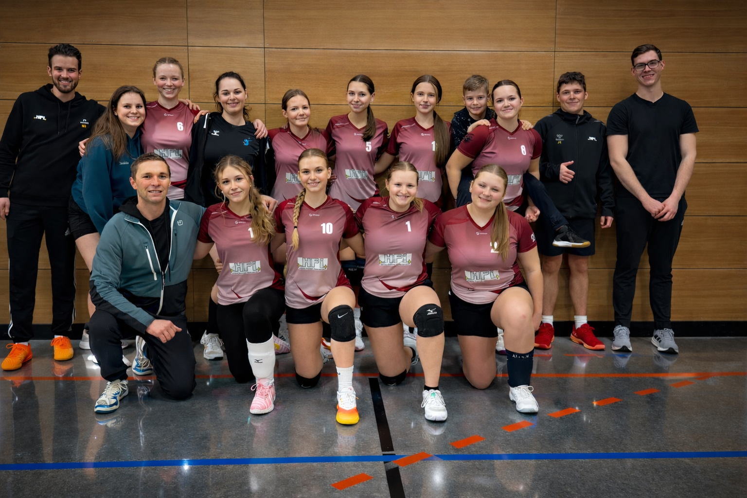 Ein besonderer Moment des Tages war das fast vollständige Zusammenkommen ehemaliger Spielerinnen der U18-/U20-Damenmannschaft der Saison 2019/2020. Die Freude über das Wiedersehen war groß – und selbstverständlich durfte ein gemeinsames Foto mit dem damaligen Trainer Uwe Kraneis nicht fehlen.