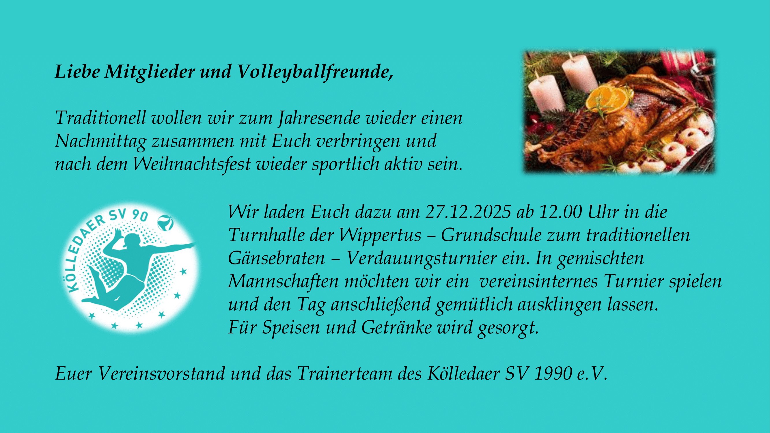 Am 27.12.2025 findet das alljährliche Gänsebratenturnier in der Grundschulhalle statt.